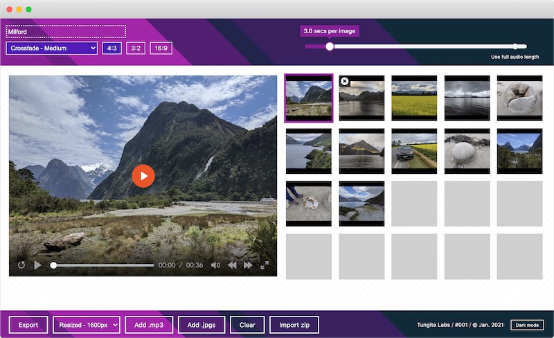Twenty images, an audio track and a slider for adjusting the seconds
